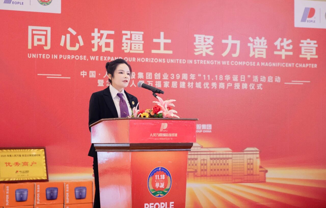 人民萬福國際商貿(mào)城總經(jīng)理唐俊容在開場致辭中,回顧了集團(tuán)從初創(chuàng)企業(yè)到中國500強(qiáng)的39年輝煌歷程,強(qiáng)調(diào)了"堅(jiān)韌不拔、勇于創(chuàng)新、追求卓越"的企業(yè)精神。她指出,人民萬福家居建材城七年的快速發(fā)展,得益于集團(tuán)平臺支撐、行業(yè)協(xié)會指導(dǎo)及商戶伙伴的鼎力支持。